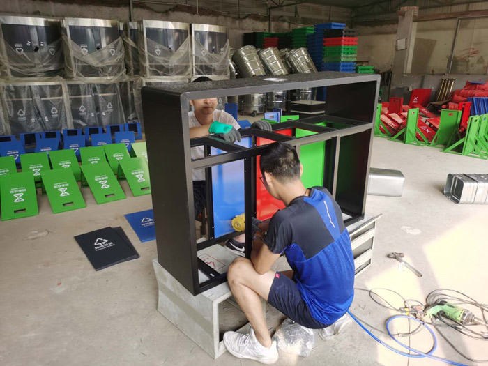 【噴涂工藝】垃圾桶經噴砂處理去油去銹后再采用室外塑粉靜電噴涂